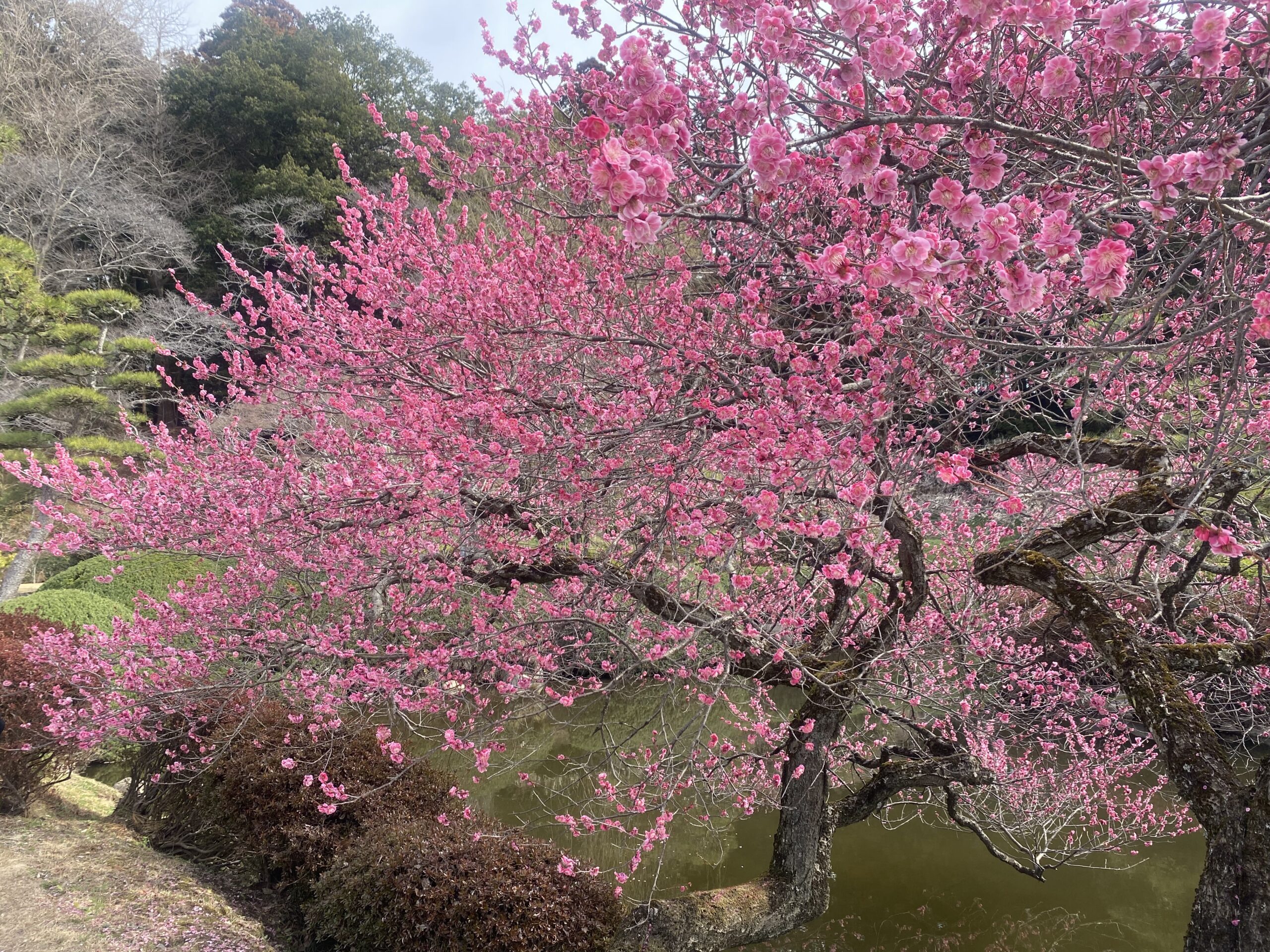 昨年は開花が遅れたんですね。今年は同じ轍を踏まないように、開花情報をチェックしたおかげで、来園時には9割の開花。感覚的には、ほぼ満開の観梅となりました!