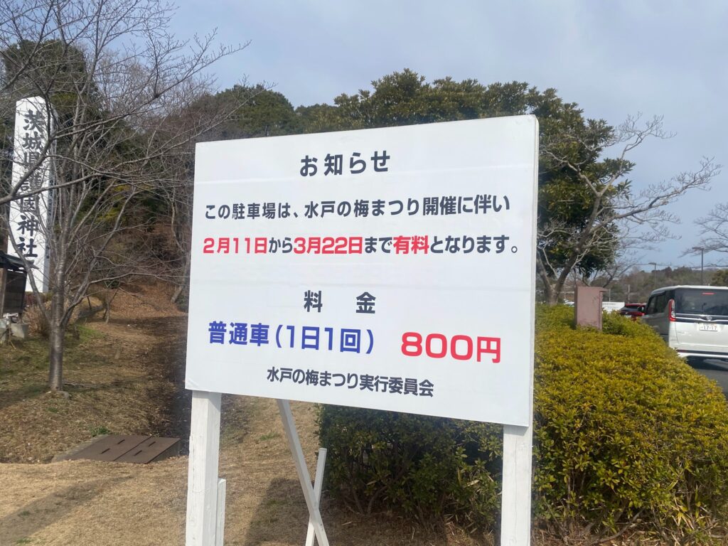梅まつりの時期など繁忙期は有料 今年(2月11日〜3月22日)の駐車料金は 800円