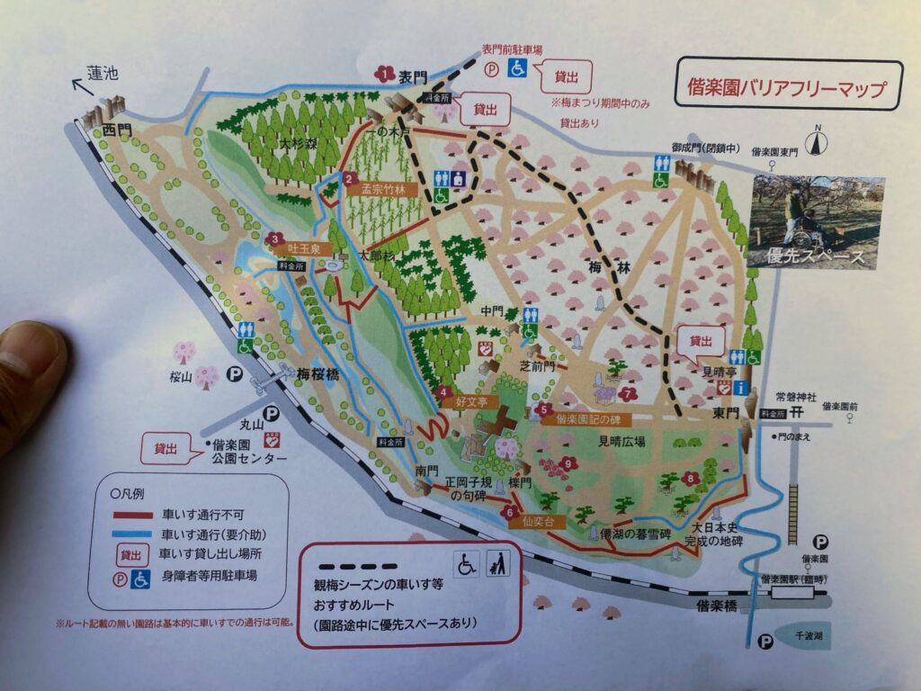 確かに、表門から入るとこのマップの点線上を通って車椅子利用での観梅がスムーズに行くようです。