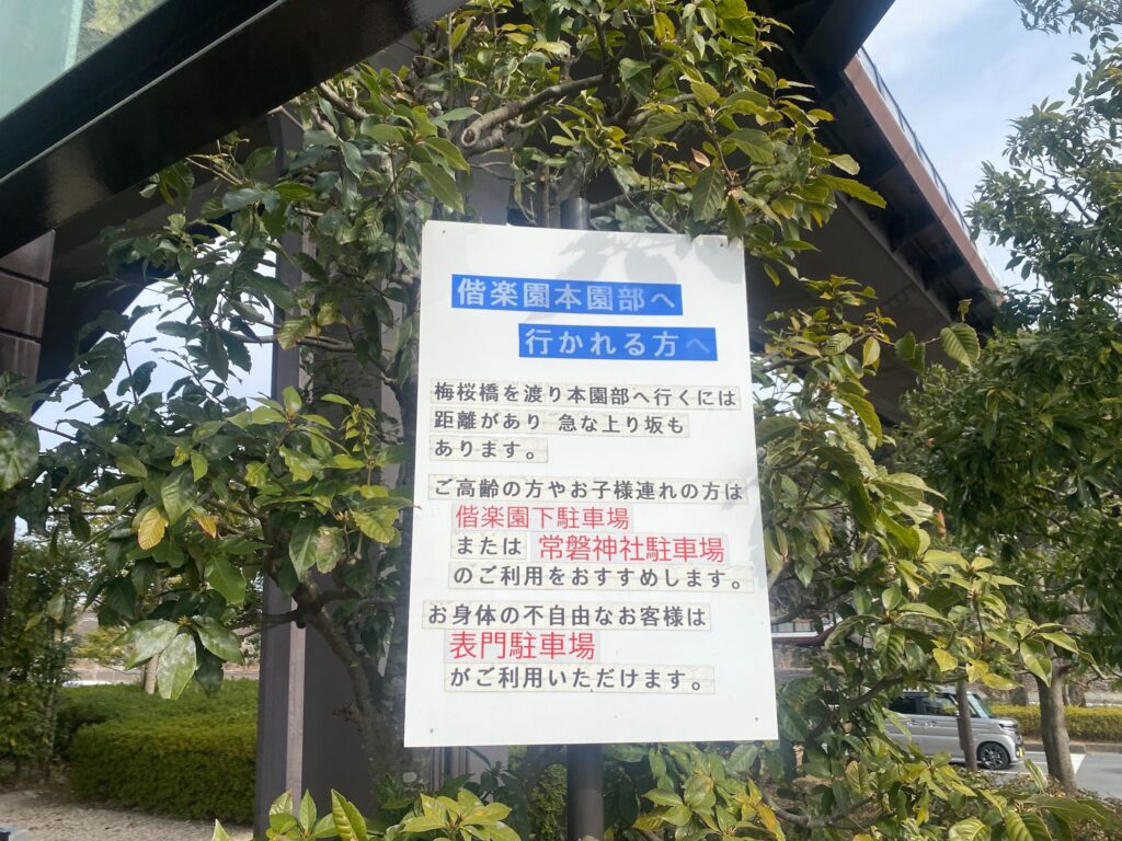 表門から梅園に向かう「車椅子などおすすめルート」がありますので、そういった意味からも車椅子の場合「表門駐車場」が最善なようです。