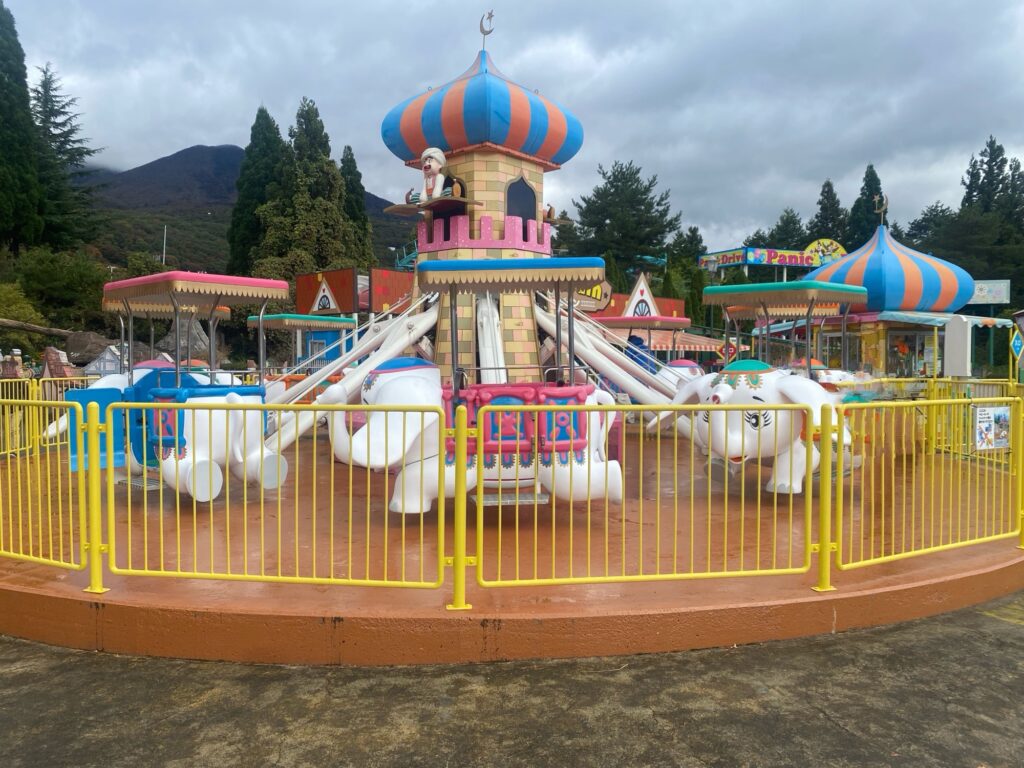 絶叫マシンではありませんが、上下に高さを変える象に、最上部に至っては中々乗りごたえ。