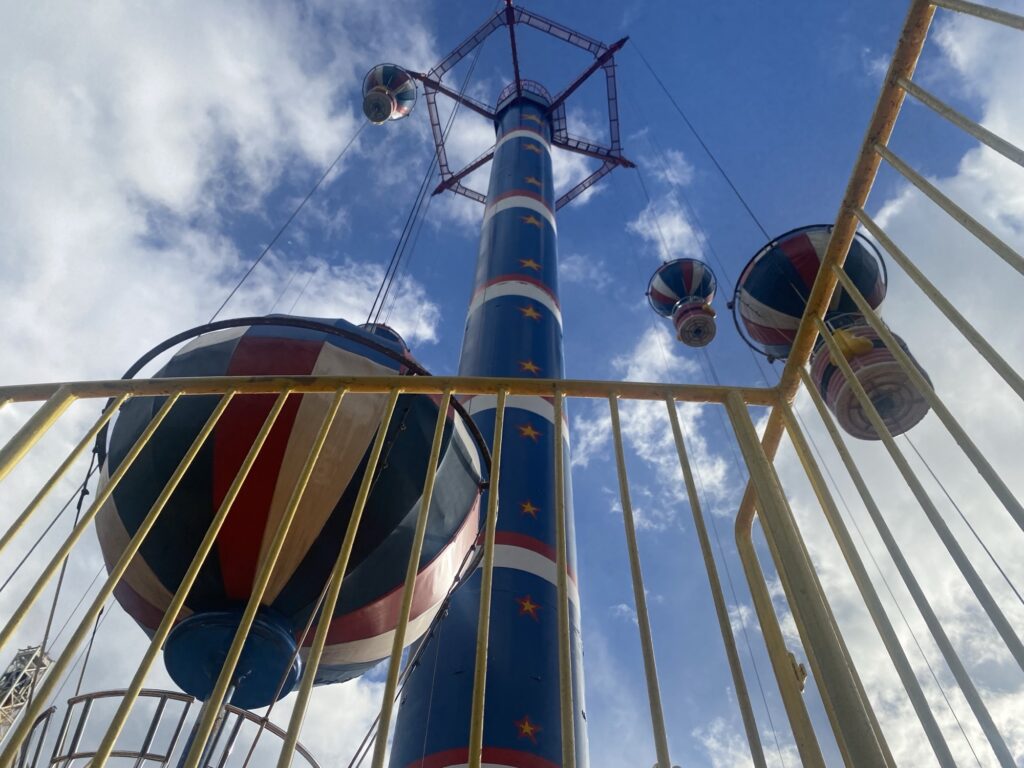 気球型のゴンドラに乗って空高く舞い上がるアトラクションです。