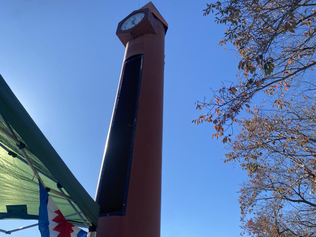 三角屋根が特徴的な時計塔、運河水辺公園のランドマーク的な存在と言えるでしょう。