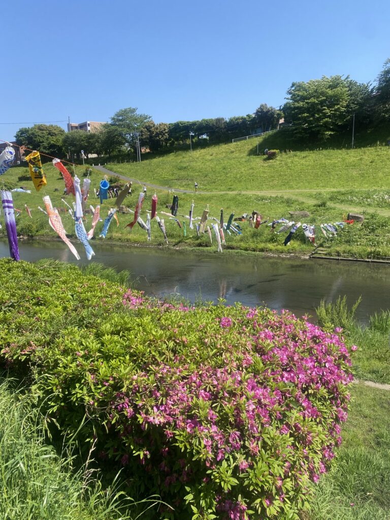 5月の 端午の節句の時には鯉のぼりが飾られて、利根運河交流館 のワークショップで作った手作り鯉のぼりも一緒に掲げられていました。