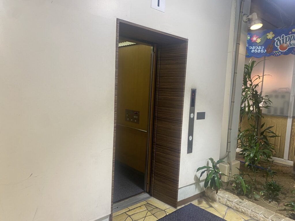 ベビーカーを押して、フロントのある2階のエリアから、1階のプールへ下るには1箇所あるエレベーターをつかうよりありません。