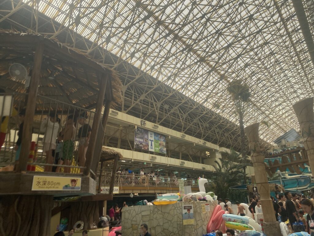 まだ未体験の、スプリングタウンやスパガーデンパレオといった水着で楽しむ温泉エリアに行ったら叶うのかもしれませんが、ウォーターパークでは人が多くプールサイドでくつろぐという感じはないです。