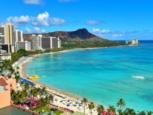 ワイキキビーチではトワイライトタイムにフラが流れ、
