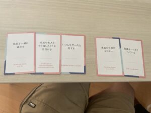 8. 手元に残った5枚のカードのうち、特に大切な「思い」のカードを3枚選び、自分の価値観を見つめ直します。